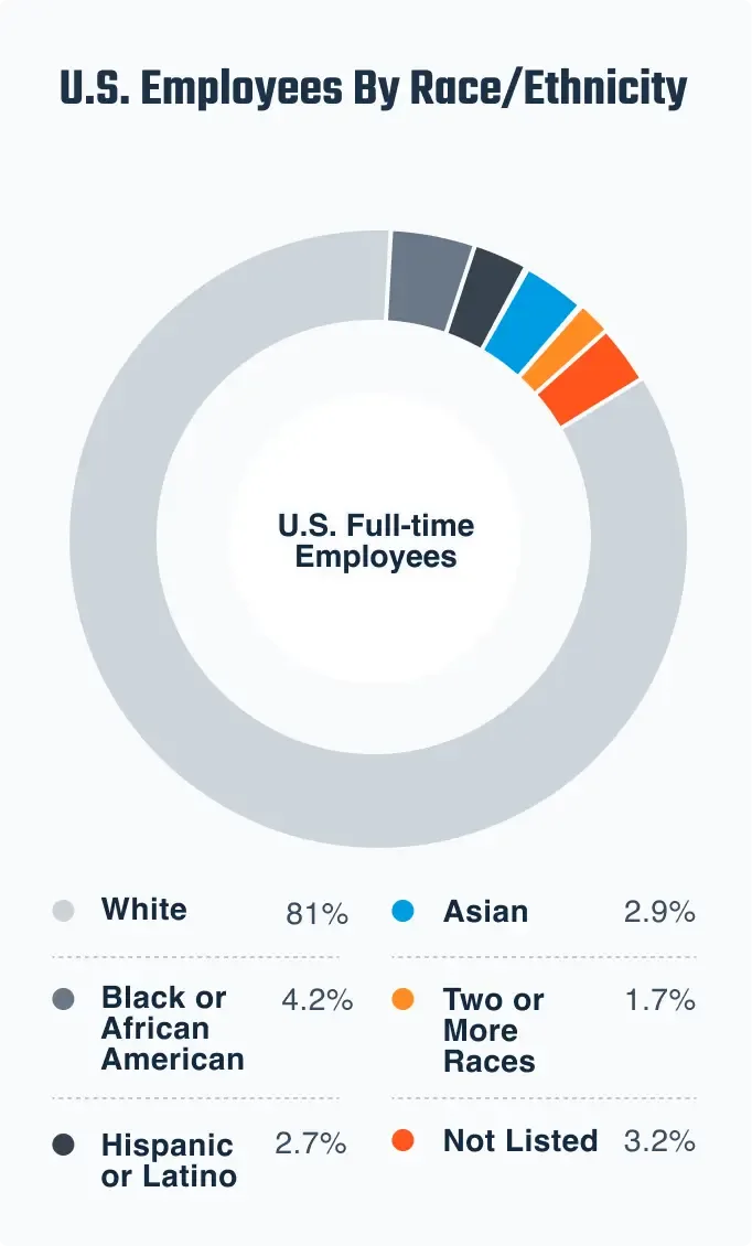 Here you'll find our employees' demographic data, including gender, age, race/ethnicity, organized by region and employment level. We update this page on a quarterly basis.