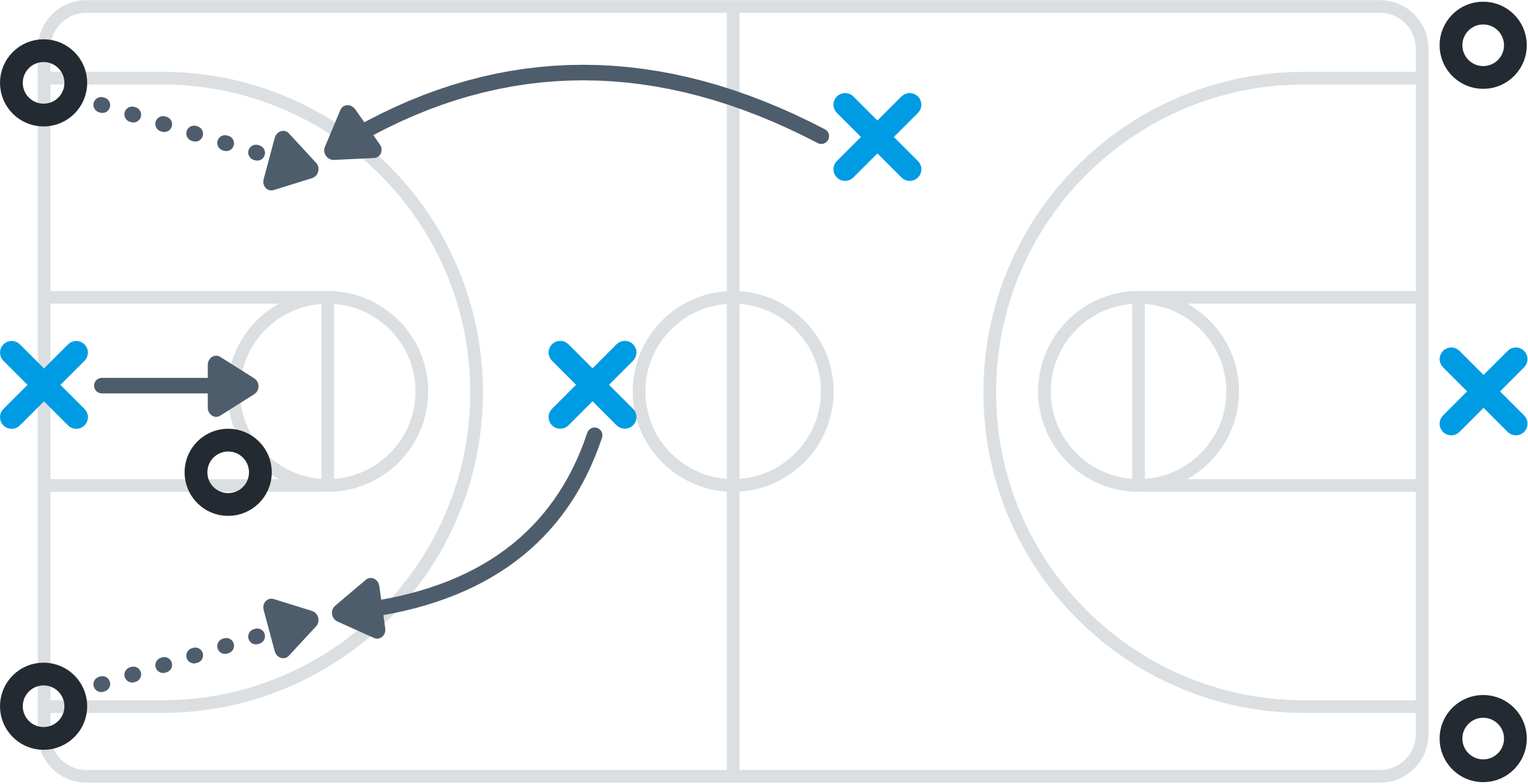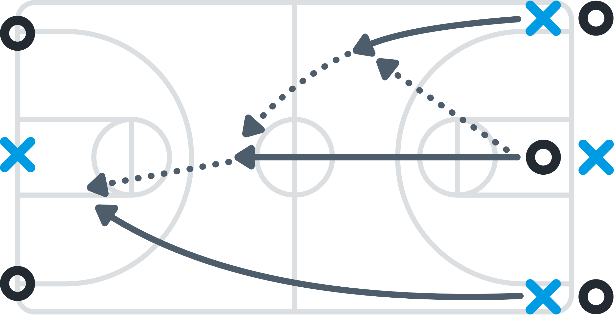 Many of the game’s best head coaches use this drill because it prioritizes taking care of the ball, making quick decisions and transition defense. Players quickly rotate in and out, ensuring everyone gets involved.