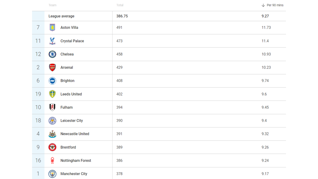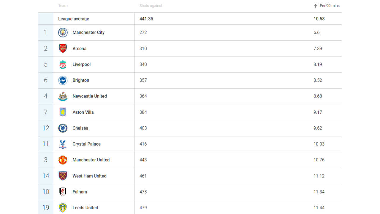 Although they can get exploited in wide areas, Villa have unquestionably proved a tough nut to crack from this centrally compact and organized structure, which saw them concede the sixth least shots in the league and sixth lowest goals per 90 (excellent considering their poor start to the season under Gerrard).