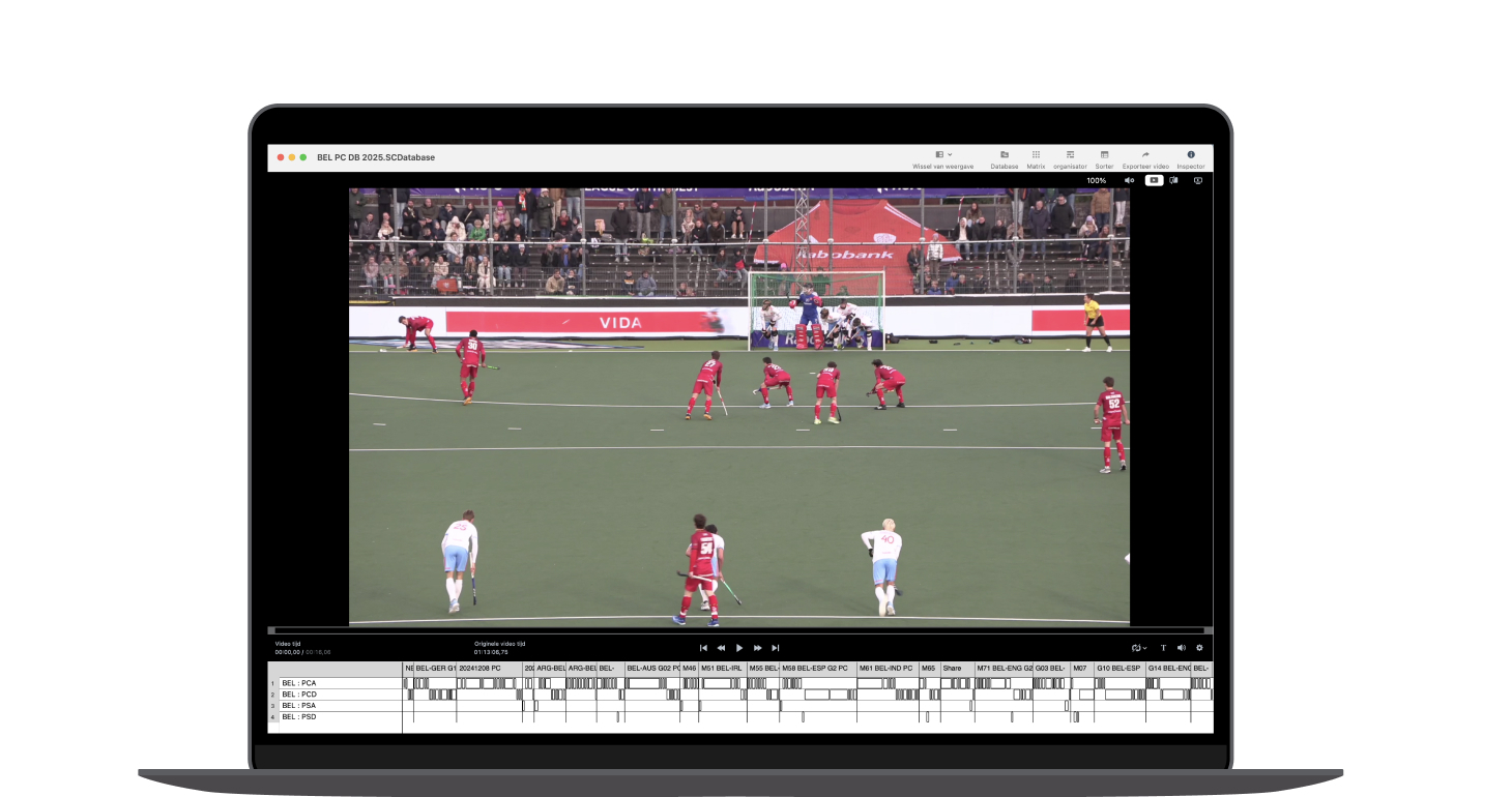 Belgium codes both technical and tactical dimensions of performance. On the technical side, Analysts tag isolated instances so coaches can quickly jump to specific players or techniques. This includes small details such as hand position on the stick, defensive body alignment, ball positioning before striking, and optimal spatial control.