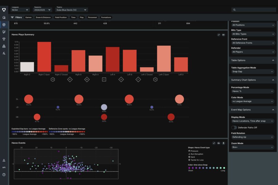 One of the best feelings as a coach, offense or defense, is finding a tendency or weakness in your opponent, putting together a play or gameplan specifically to exploit it, and then having that be successful on gameday. Sometimes that tendency can be found in the hours of film study, or that process can be aided by analytics to help coaches notice things earlier. We have recently released two tools that will help offensive coaches break down opposing defenses to a higher degree at speed. Helping them find those tendencies, or glaring weaknesses to exploit on gameday!