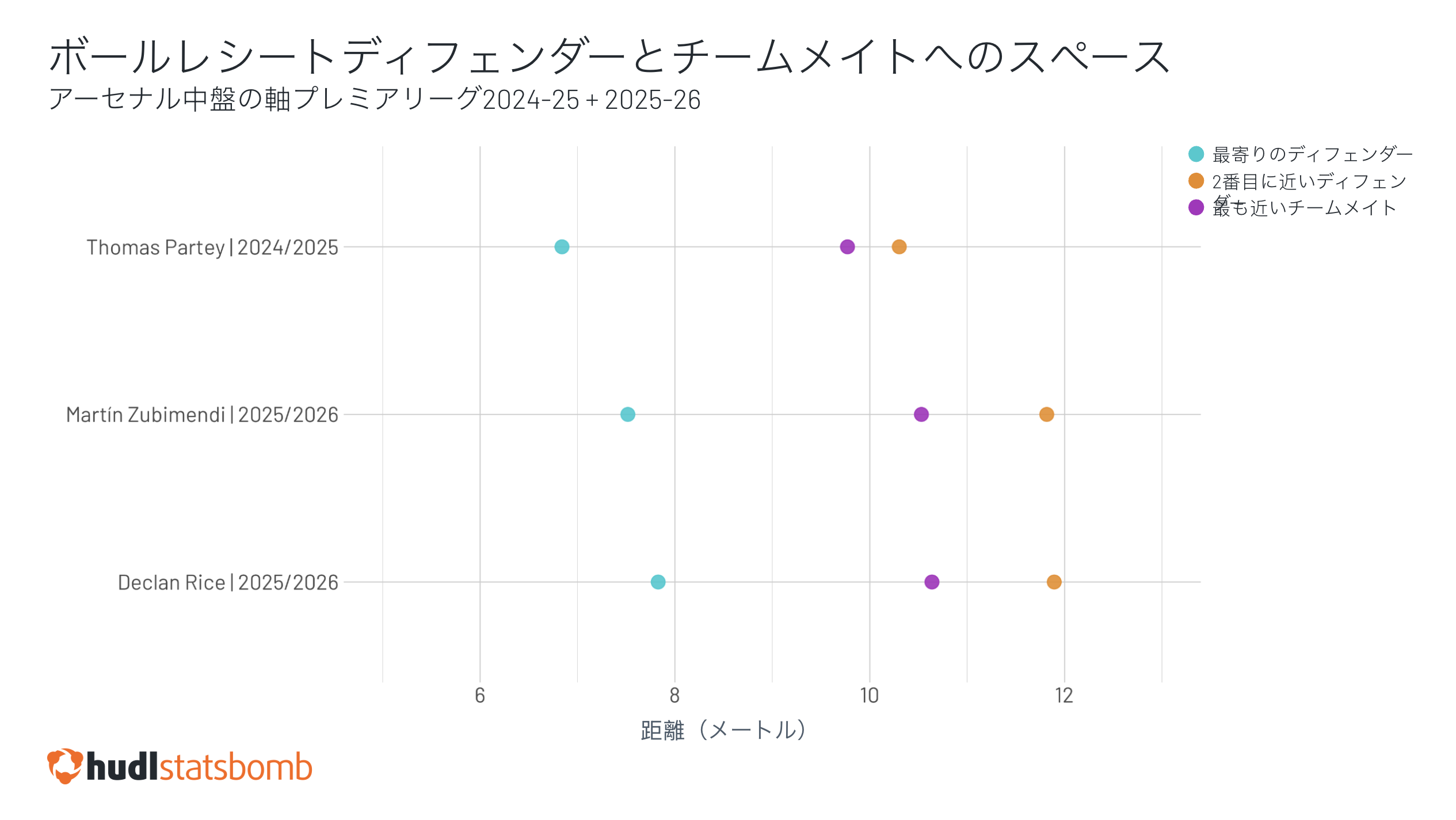 その増加したスペースにおいて、ライスとスビメンディはプレー構築において重要性を増しています。今シーズン、アーセナルが1試合あたり試みたパスの23%が彼らの足元から出ており、これは昨シーズンのライスとトーマス・パーティによる19%と比較して増加しています。