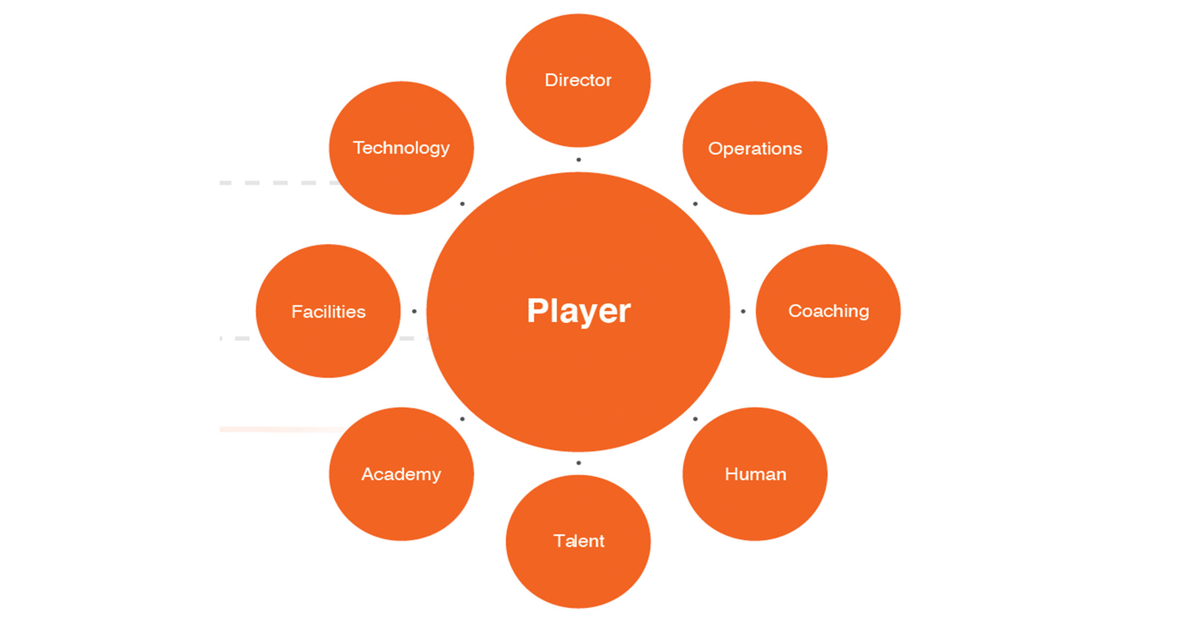 In a High Performance environment, this is often translated into a Player Centred development model as highlighted in Figure 2, that captures the key non-negotiables required by the supporting departments. In turn, this is used to generate value in the players that can be realised through either player trading or time in the first team.