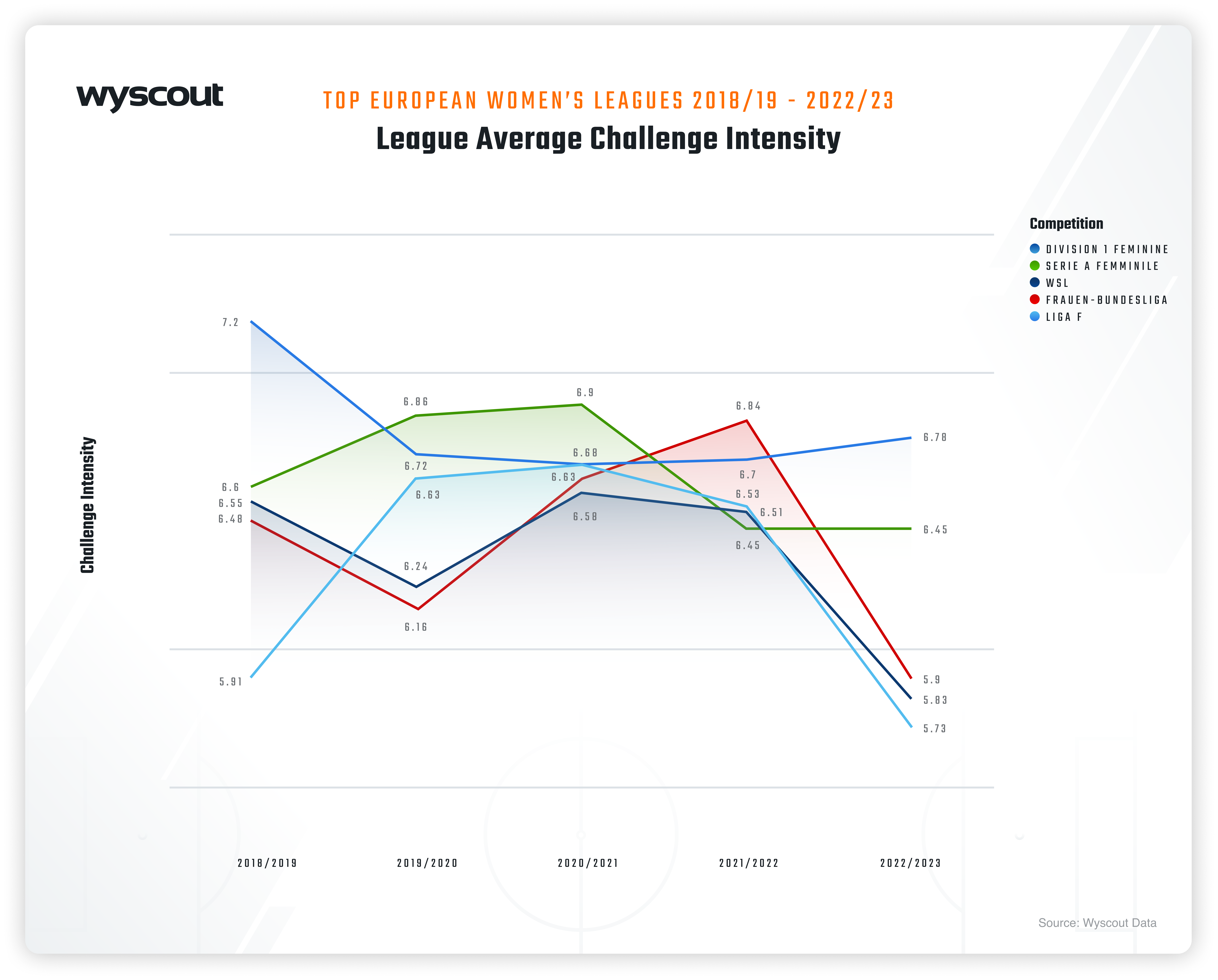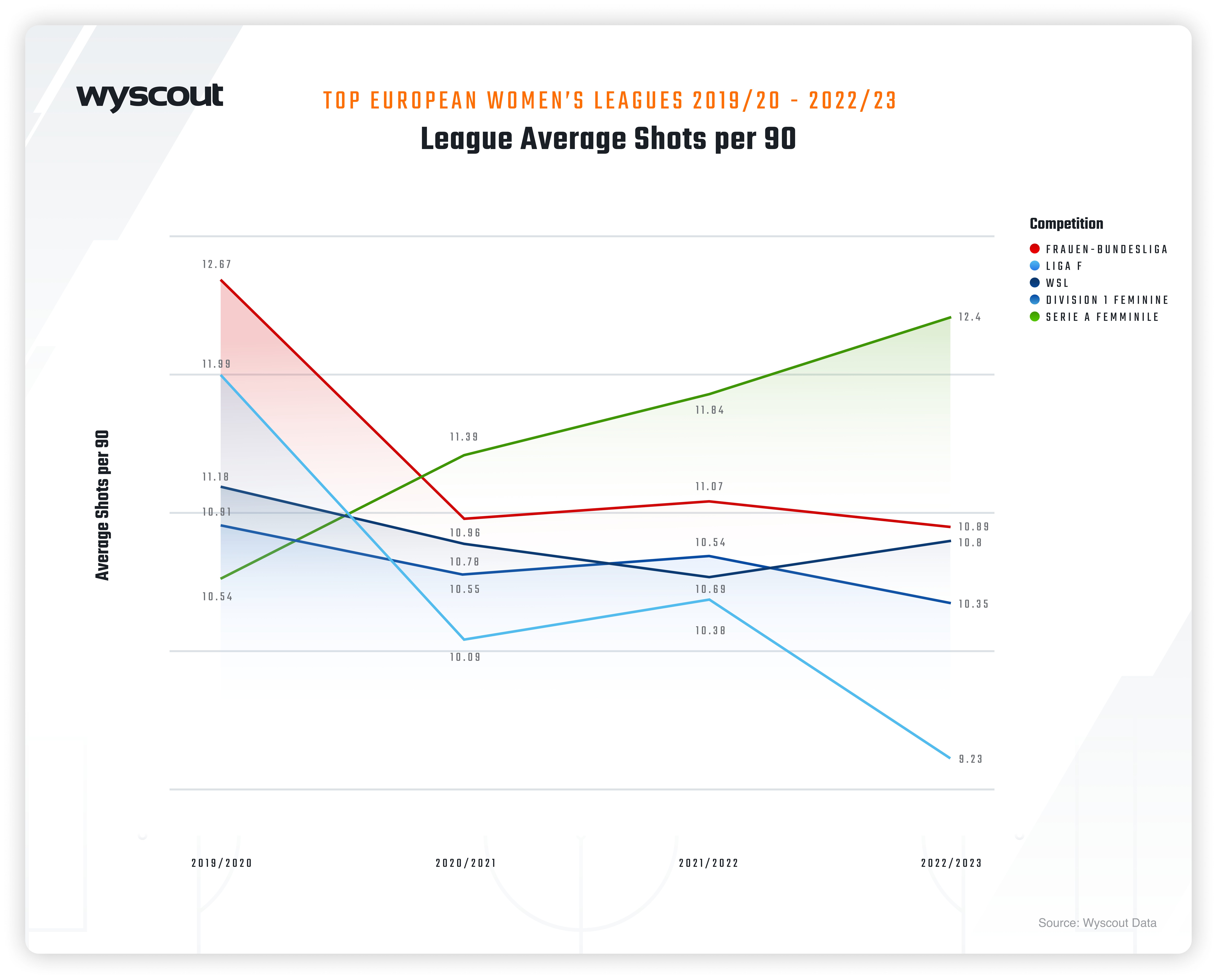 Using the Wyscout database, which feeds from over 500 competitions and 600,000 players globally, our expert team has studied data from Europe’s top women’s leagues over the past 5 seasons, unveiling some interesting trends that could be a factor when approaching data for your football club or organization.