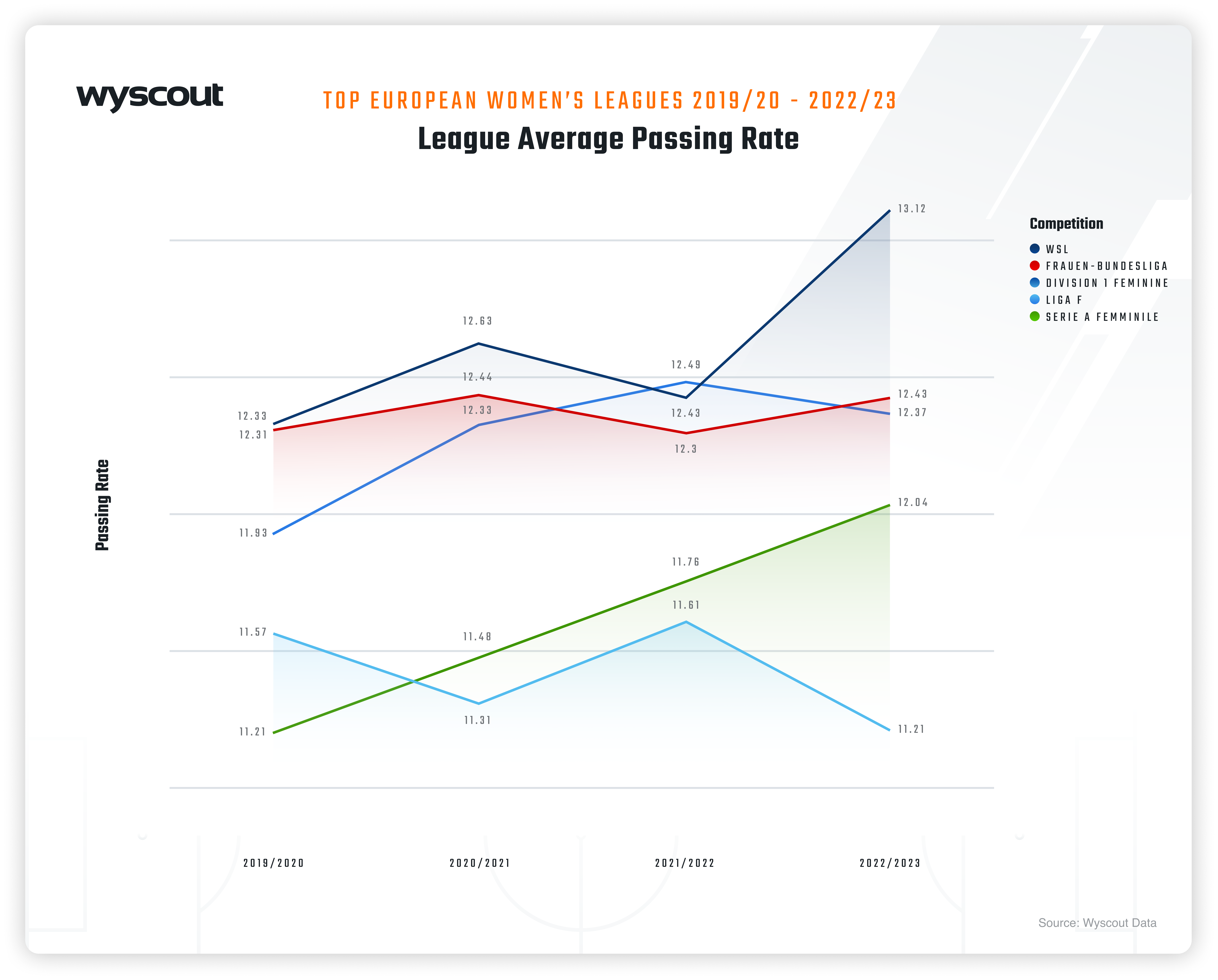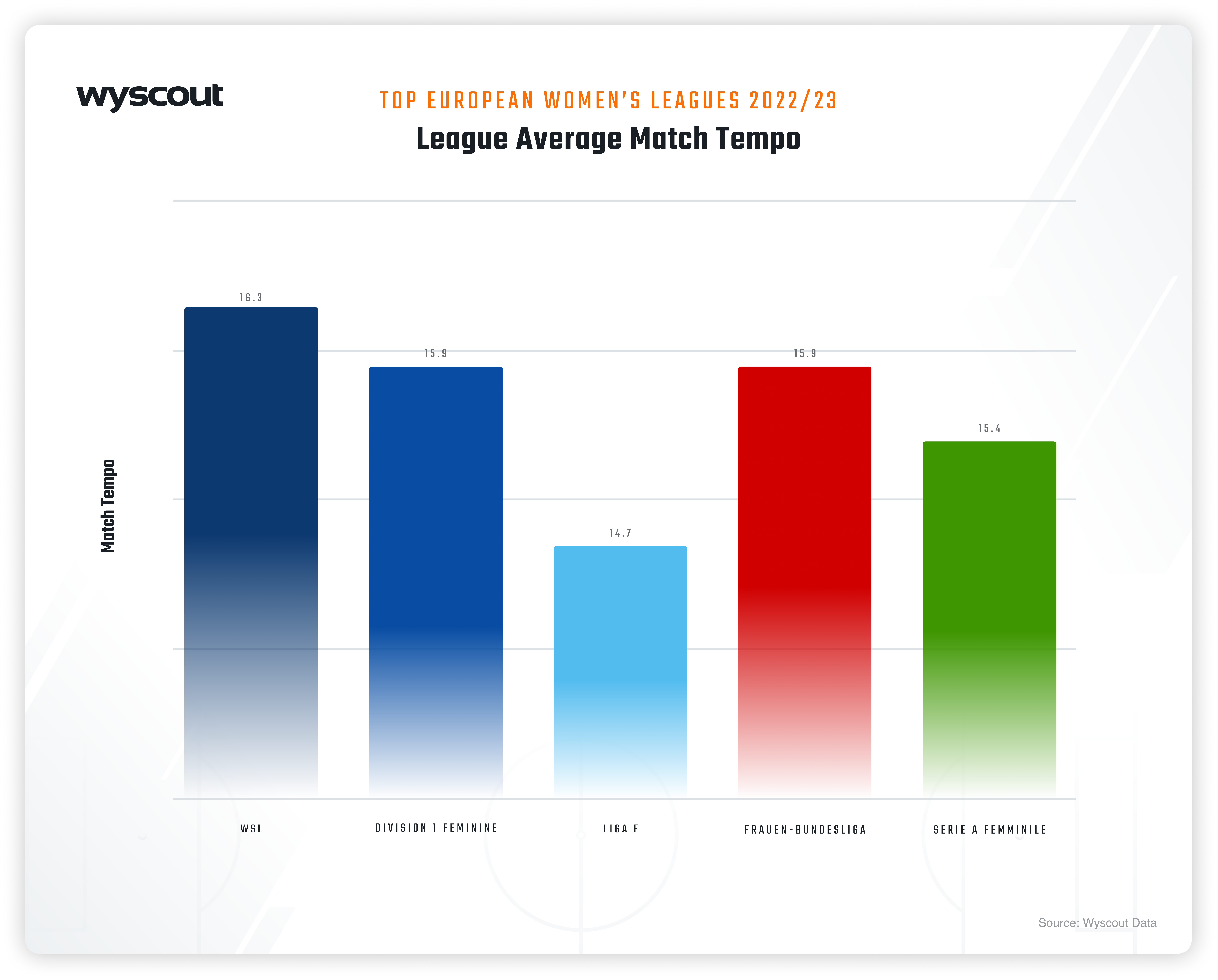 By benchmarking the top women’s leagues in Europe using Wyscout data, we have been able to analyze some interesting trends and patterns that can help teams measure themselves against and consider when looking to build a style of play and identity for their club.