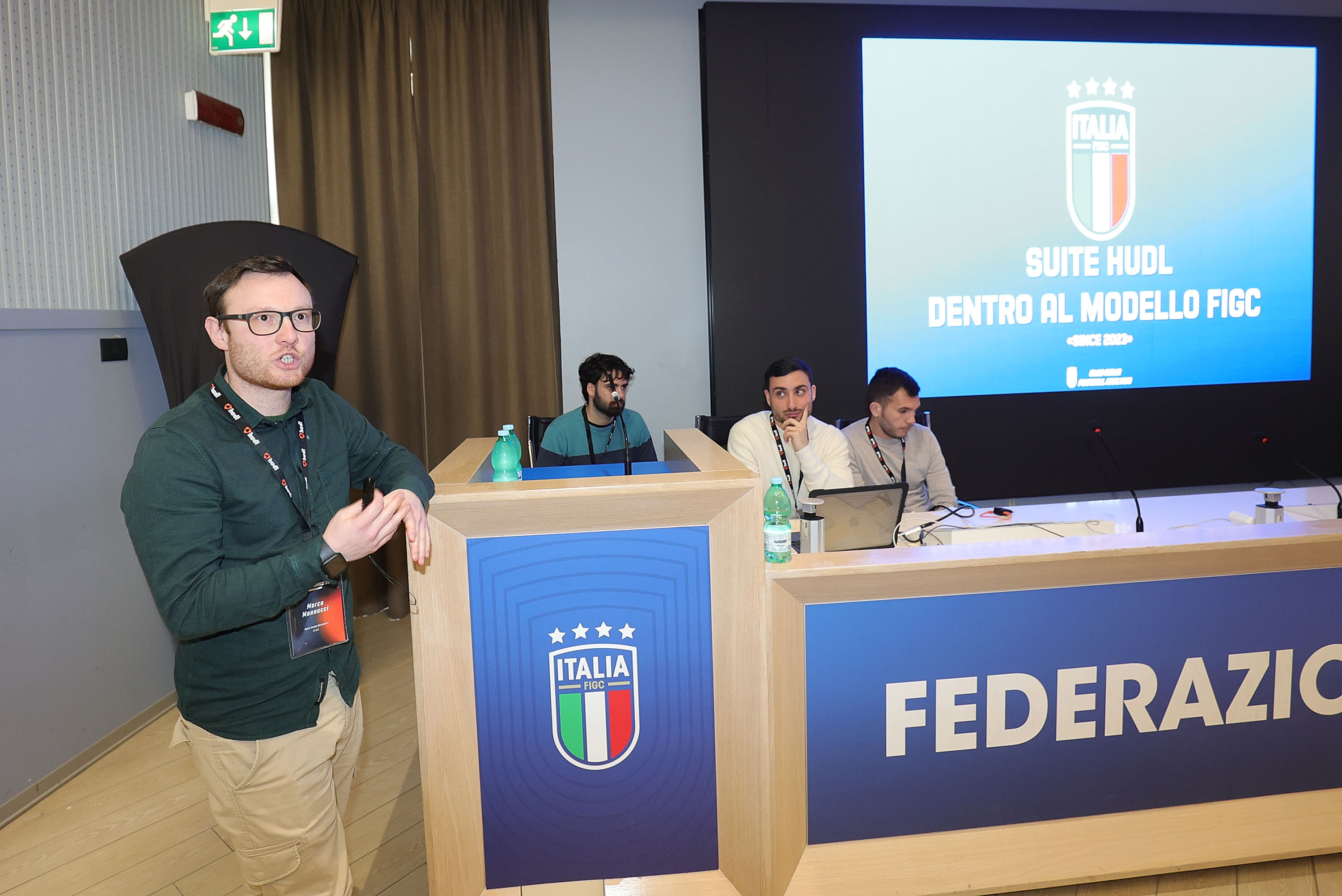 Un momento centrale della giornata è stato dedicato alla Federazione Italiana Giuoco Calcio e al suo utilizzo della Hudl Pro Suite nel supportare il lavoro dei suoi team nazionali. Marco Mannucci (Nazionale Maschile), Guido Didona (Nazionale Femminile) e Gianluca Mazziotti (Under 21) hanno condiviso esempi pratici e approfondimenti su come integrano la tecnologia nei rispettivi processi di analisi.