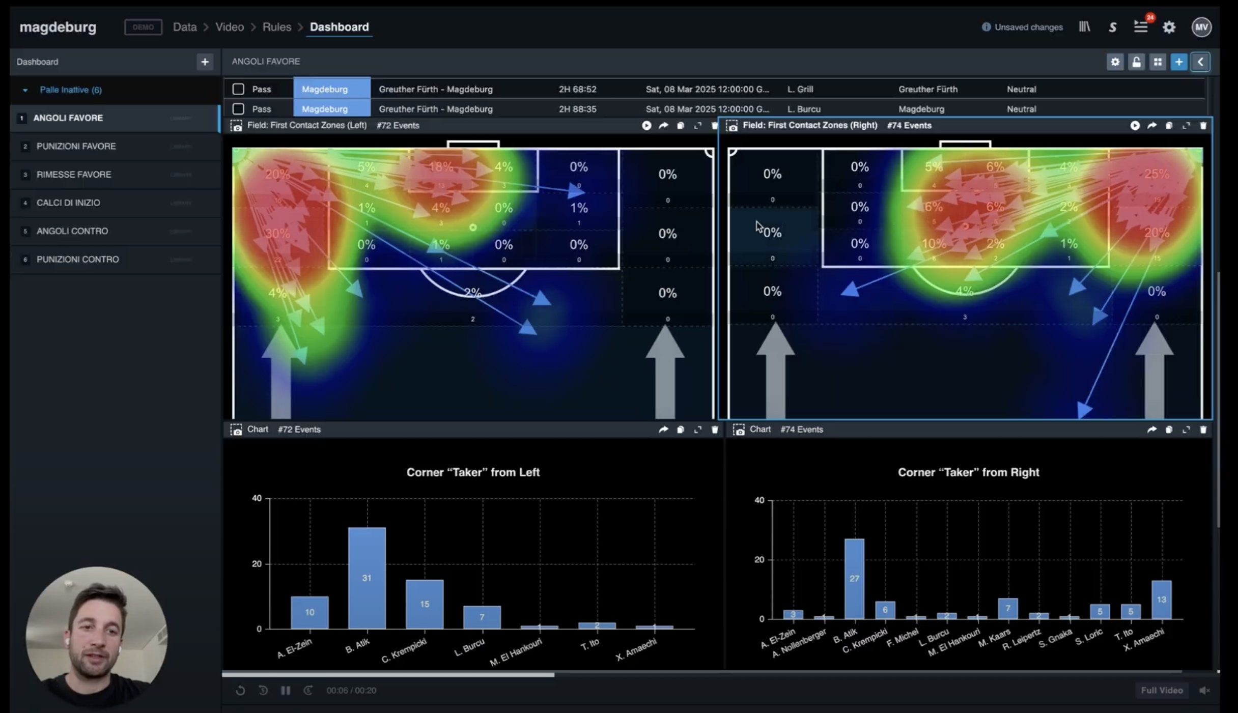 Martino Vignali, Match Analyst dell’Al-Nassr, è intervenuto da remoto per mostrare un caso di studio sull’analisi dei calci piazzati, evidenziando come Insight permetta di identificare schemi ricorrenti, confrontare situazioni di gioco e creare clip personalizzate per staff e giocatori, tutto integrato con l’ecosistema Hudl.