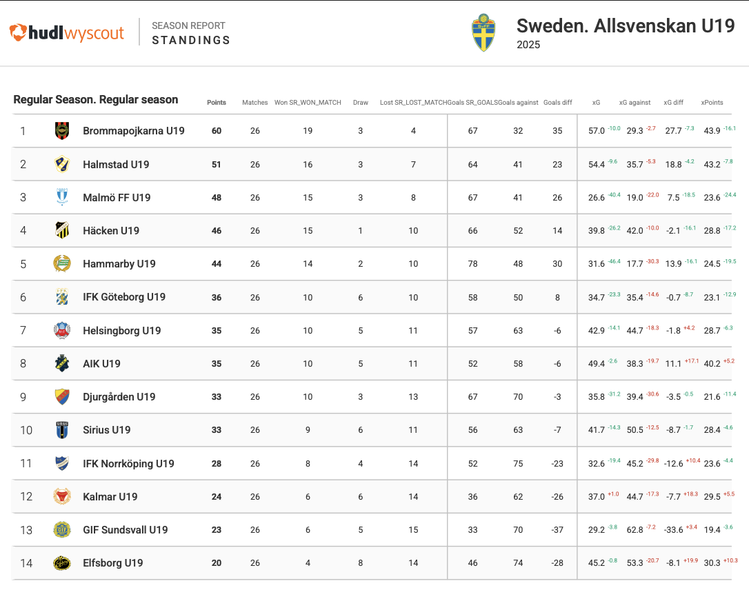 However, a bit like the Premier League 2 in England, the P19 Allsvenskan doesn’t receive much mainstream coverage on a national level. Nevertheless, as part of Hudl Wyscout’s Youth Competitions Pack—which covers over 190 of the best youth tournaments around the world—scouts, academy directors and heads of recruitment are able to monitor the next generation of Swedish stars before they become household names.