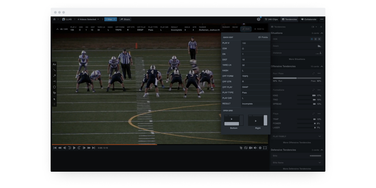 So what does this mean? The traditional grid below your video is powerful, but it's not always exactly what you need. Now, do even more with the vertical and quick edit options all without sacrificing your video size or flexible layout. Plus, data will update in both Hudl Beta and in the Hudl Classic Library—and vice versa in case you’re still switching between the two.