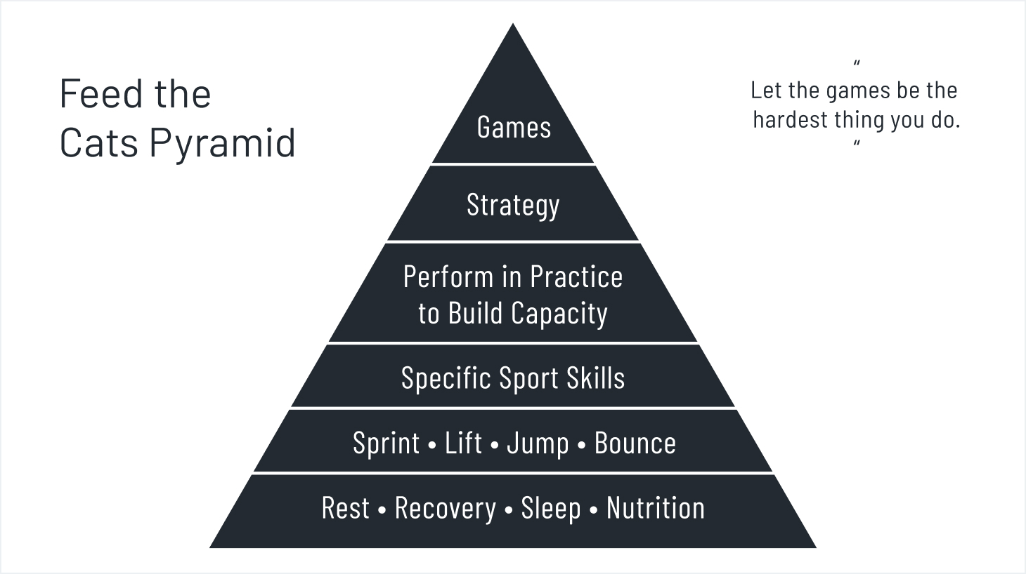 Feed the Cats makes an athlete’s performance the top priority by building on a foundation of rest, recovery, sleep and proper nutrition. Tony Holler wrote about the origins of his Feed the Cats philosophy, I encourage you to read it.