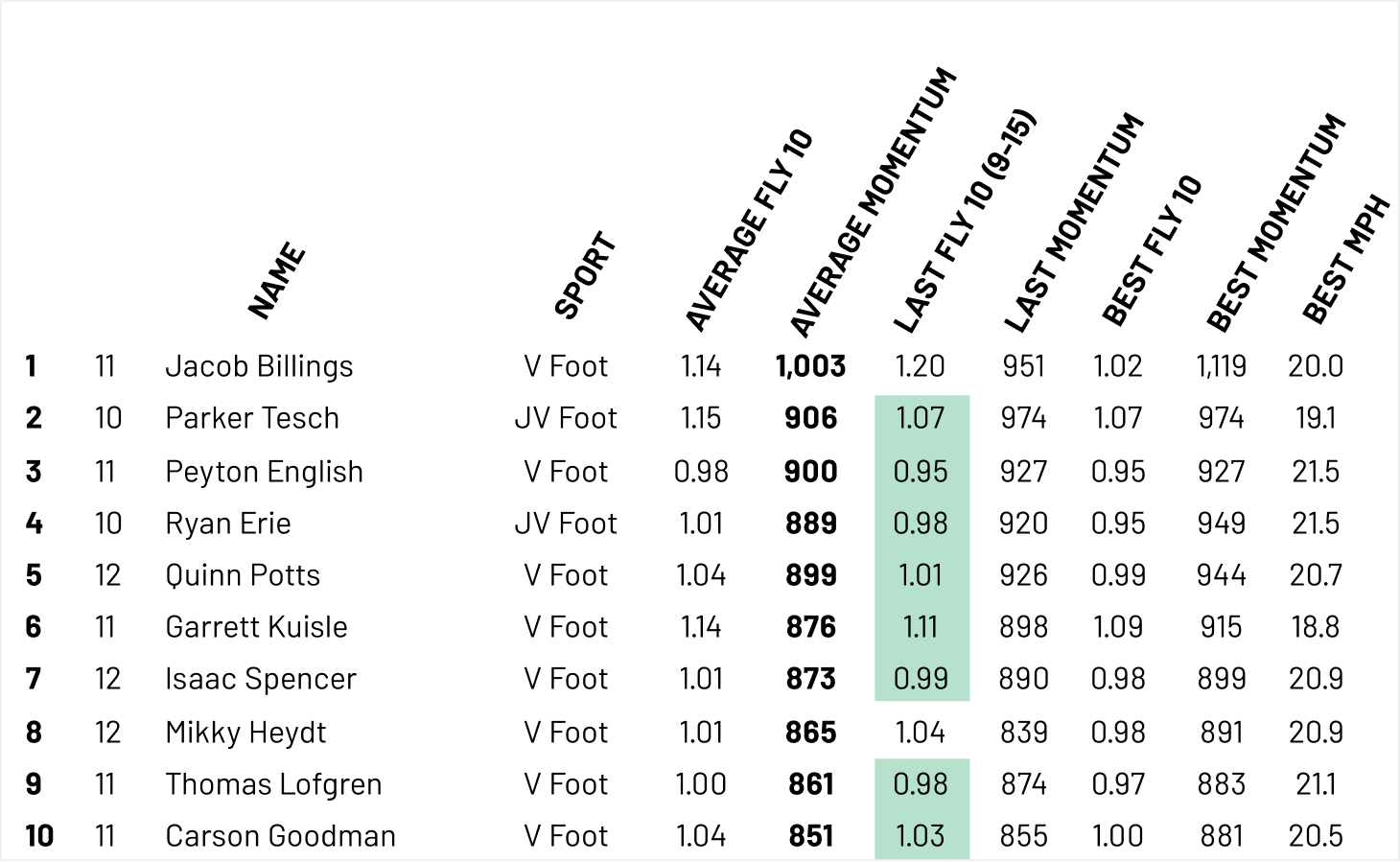 It’s important to remember this isn’t about comparing and contrasting with other programs. Every football program has different conditions. Focus on the improvement of your athletes in your program. The goal is to compete against yesterday’s self, not another school’s data and results.