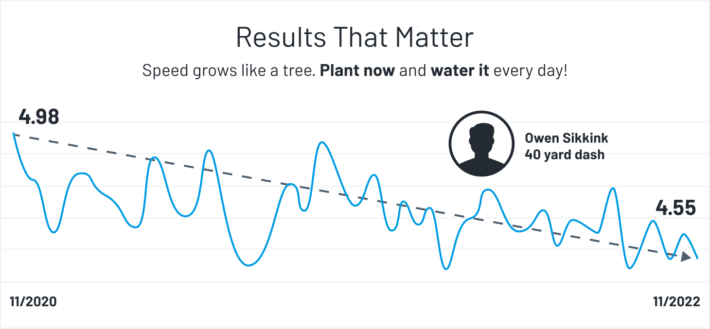 Nothing motivates young athletes more than seeing that the star varsity player once had slow times too. In our program, when a player graduates, we have 4+ years of data to show their growth over the course of their high school career. The ones who are the most consistent have the most growth!