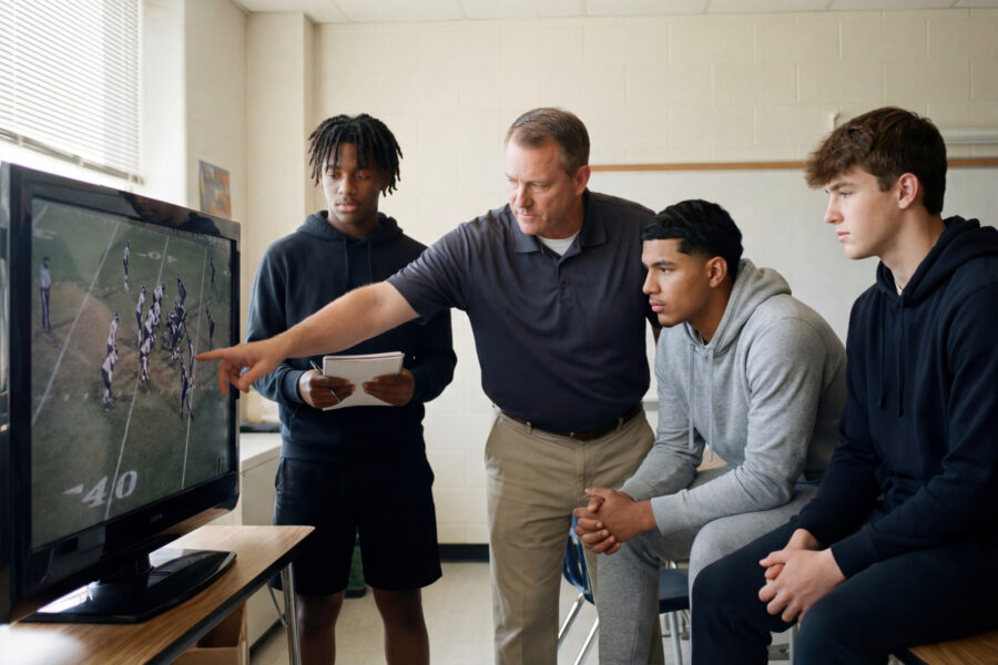 Football film study should train post-snap eyes. Tag coverages in Hudl by down and distance so your QB sees how often they rotate on third down or in the red zone. When he’s seen it 40 times during the week, it’s not a disguise anymore—it’s a tendency.