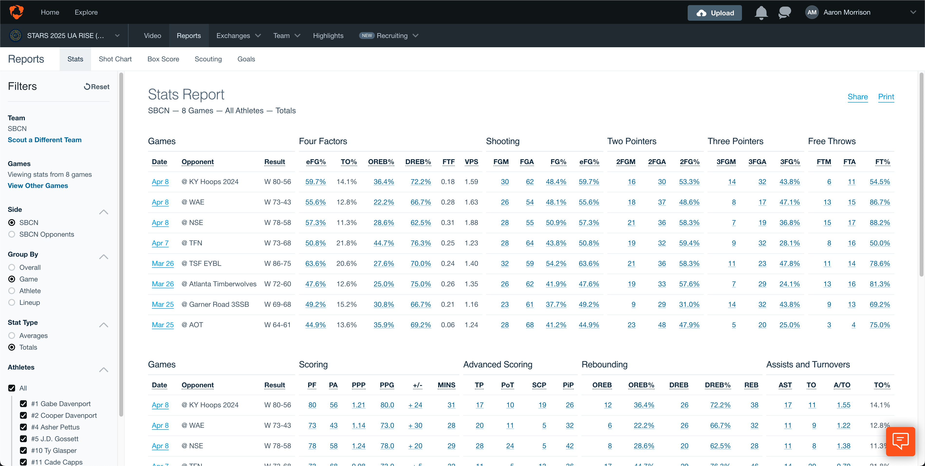Aaron Morrison, the STARS Director of Leagues–Tournaments–Special Projects & the High School Boys' Program, says stats are a big piece of how he and his fellow coaches watch film. After reviewing the numbers, he has a more comprehensive view of performance as well as credibility with his players.