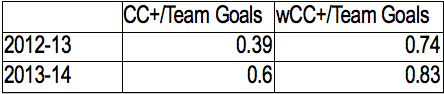 I’ve only used the data that I’ve complied to date which is 2012-13 and 2013-14 Premier League data. In order to really understand how widely applicable CC+ and wCC+ is we need to see how it works when applied to other leagues around the world.
