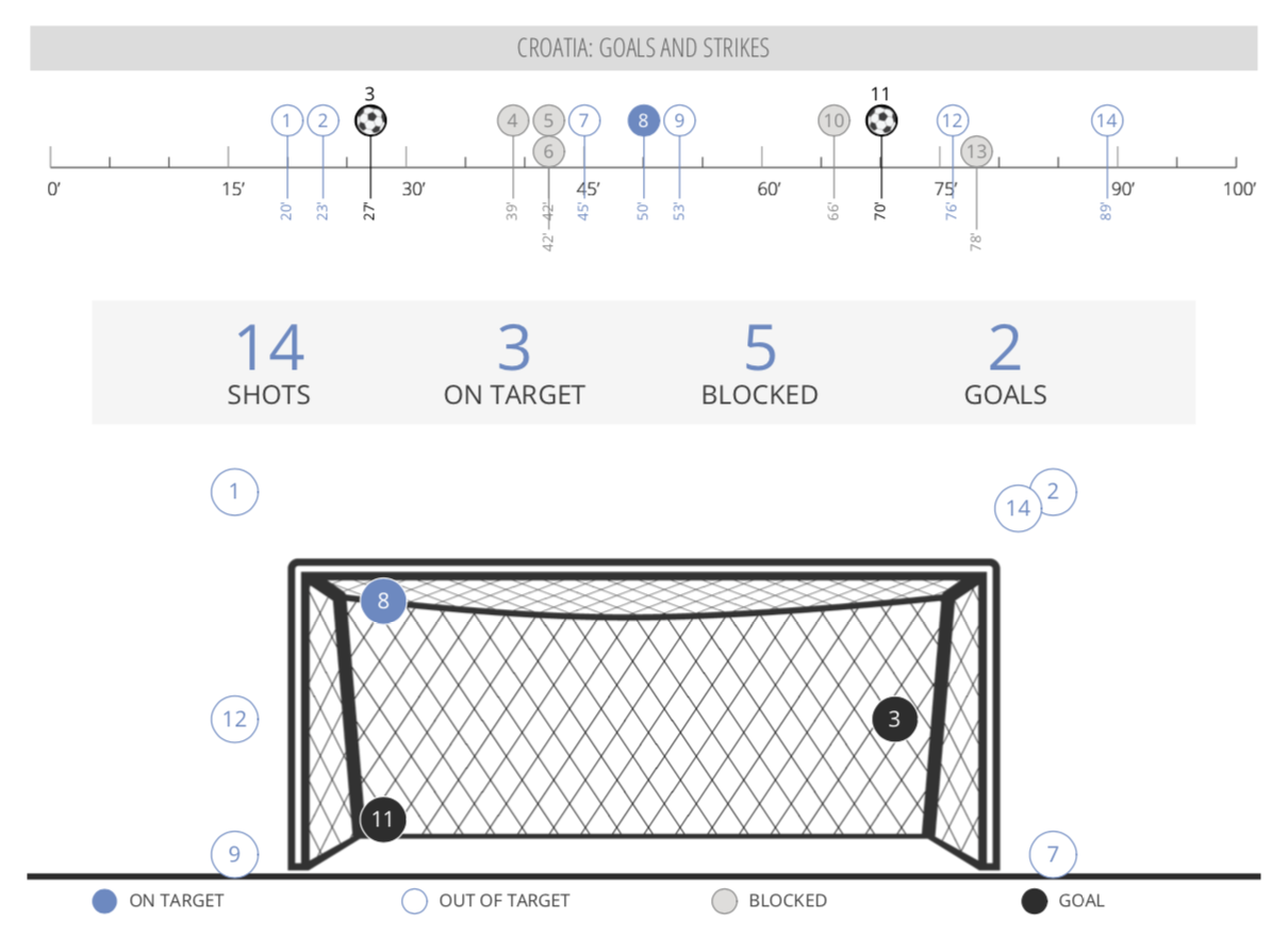 La Croatie a obtenu en grande partie les meilleures statistiques offensives, surtout en première mi-temps.