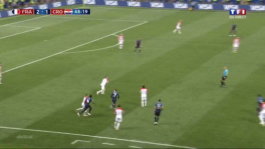 Pogba a passé le ballon 11 fois à Mbappé, soit trois fois de plus qu’aux deux autres attaquants présents sur le terrain. Il s’agit du nombre de passes le plus élevé entre deux joueurs sur le terrain.