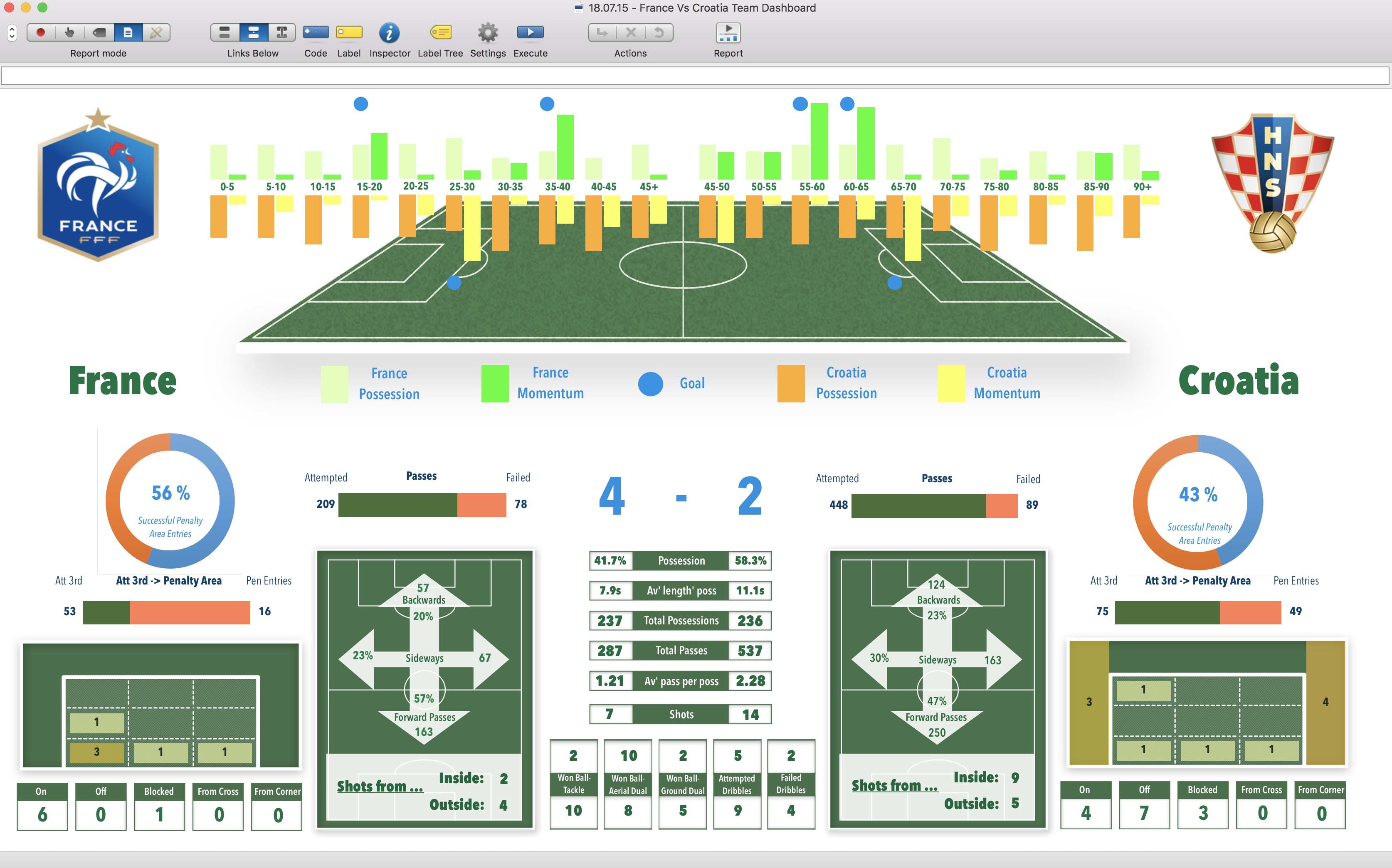 Les données générées par notre application Sportscode indiquent que la Croatie a obtenu de meilleures statistiques dans plusieurs aspects du jeu, notamment la possession, le nombre total de passes et les incursions dans la troisième moitié du terrain.