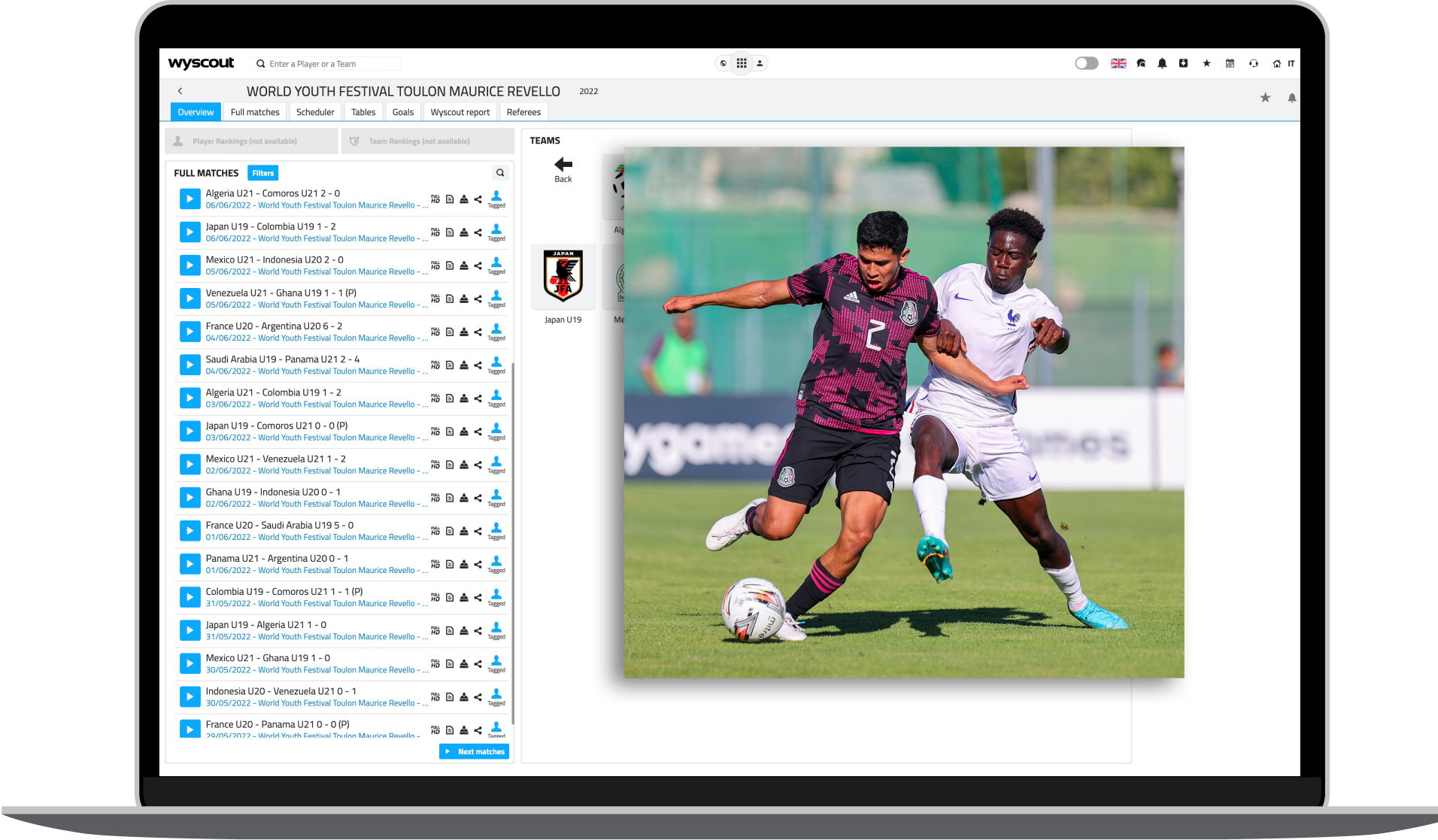 Wyscout interface on a laptop