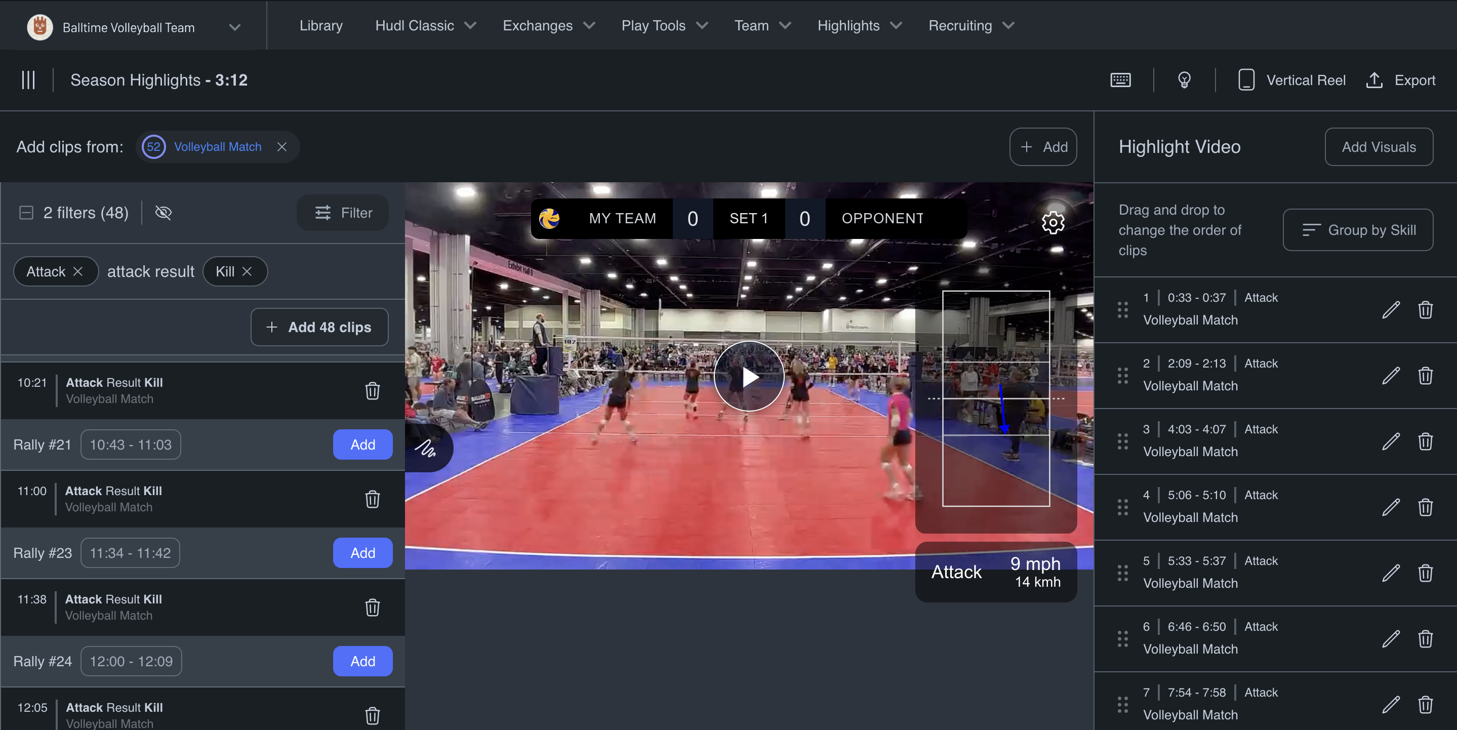 Highlights can be built directly from the video player or by heading to the Highlights tab on the toolbar to start from scratch. Whether you’re creating videos for individual players or the entire team, you’ll have the flexibility to edit and update them at any time—making it easy to keep content fresh throughout the season.